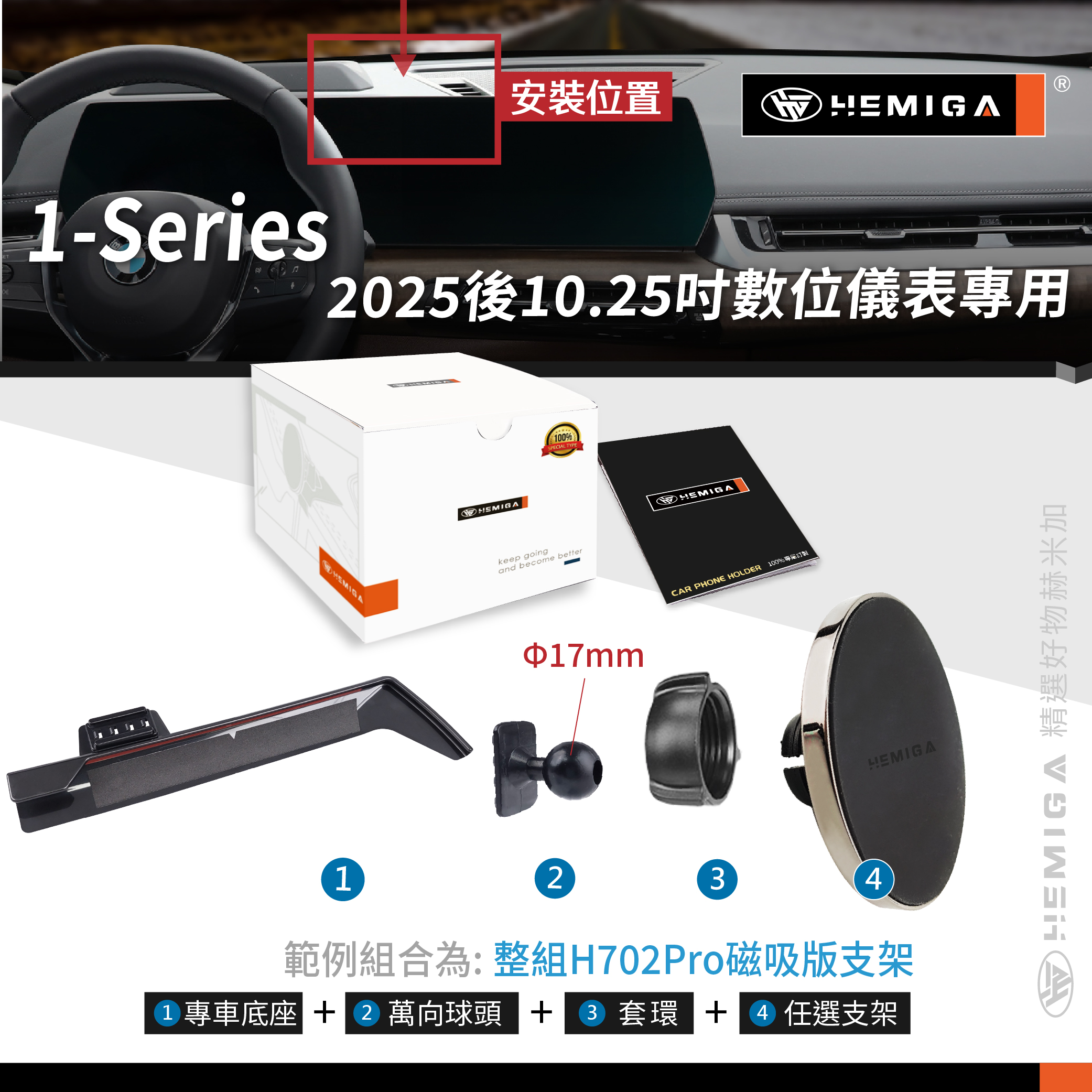 HEMIGA 120手機架 M135手機架 2025年後 1系列 F70 BMW 屏幕型 手機架