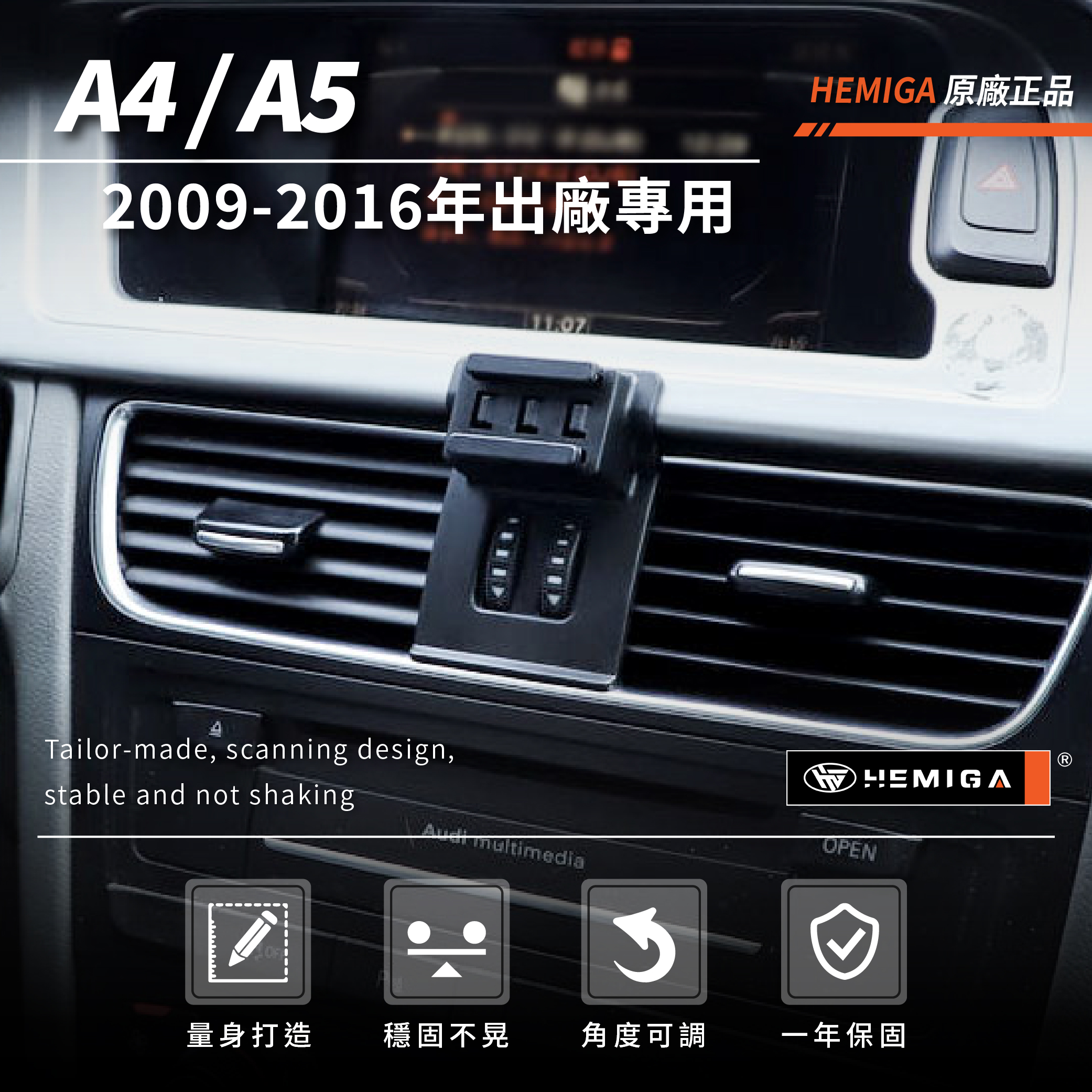 HEMIGA A4手機架 2009-2016 A5 手機架 純扣卡 Audi 奧迪 專用型 手機架
