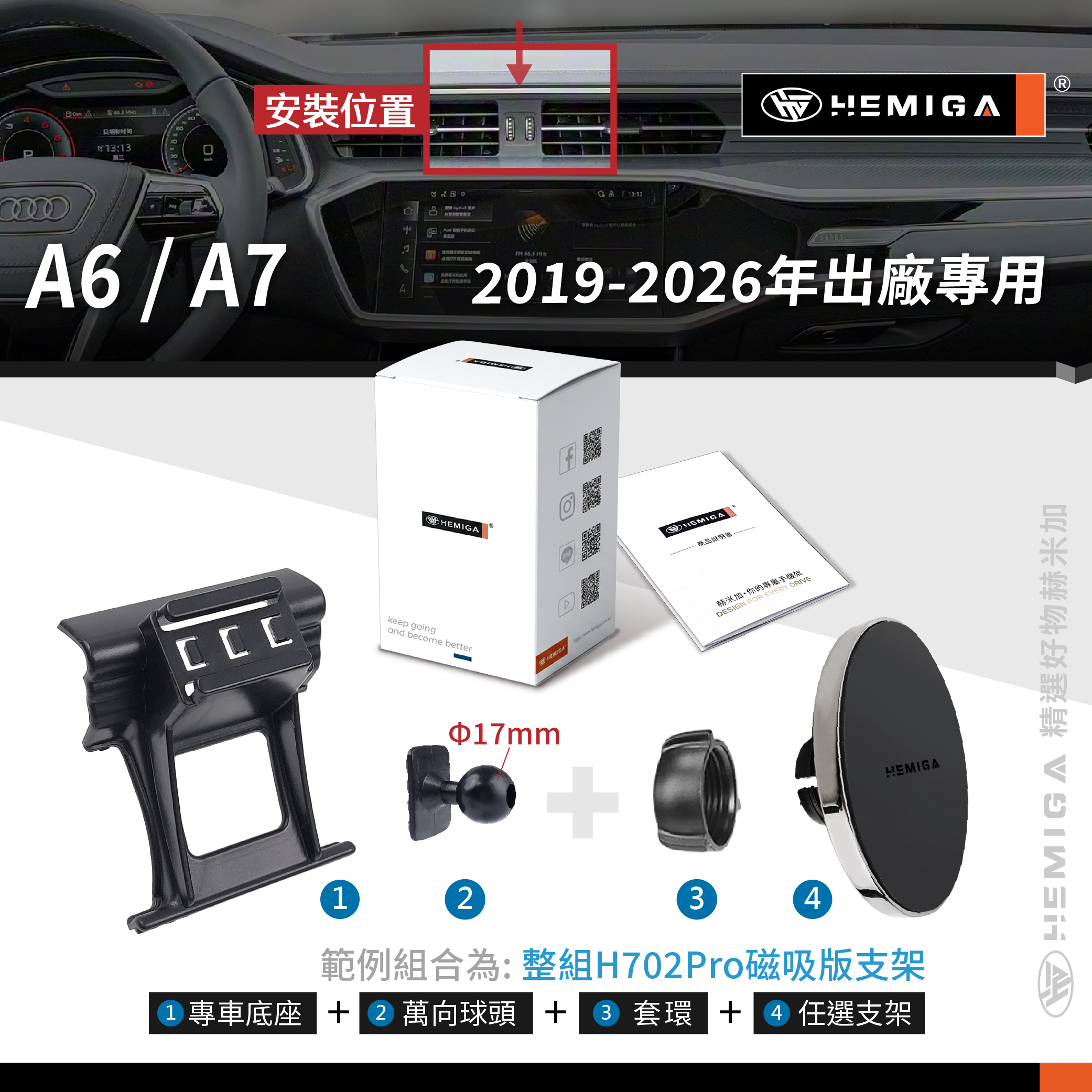 HEMIGA A6手機架 2019-2026 純扣卡 A7手機架 Audi 奧迪 專用型 手機架
