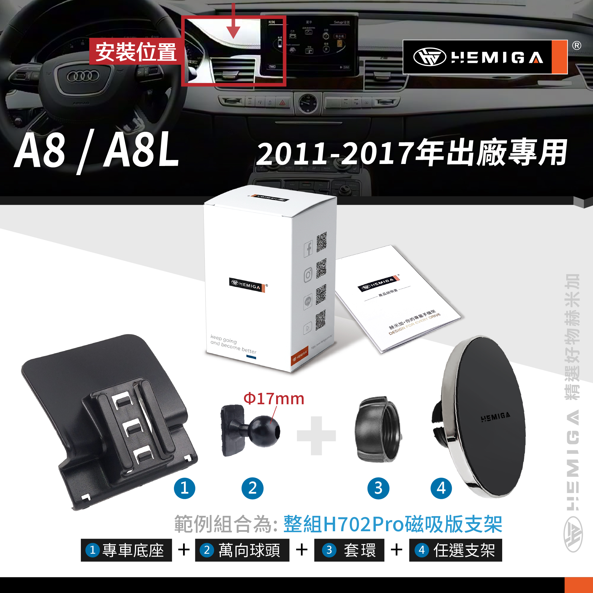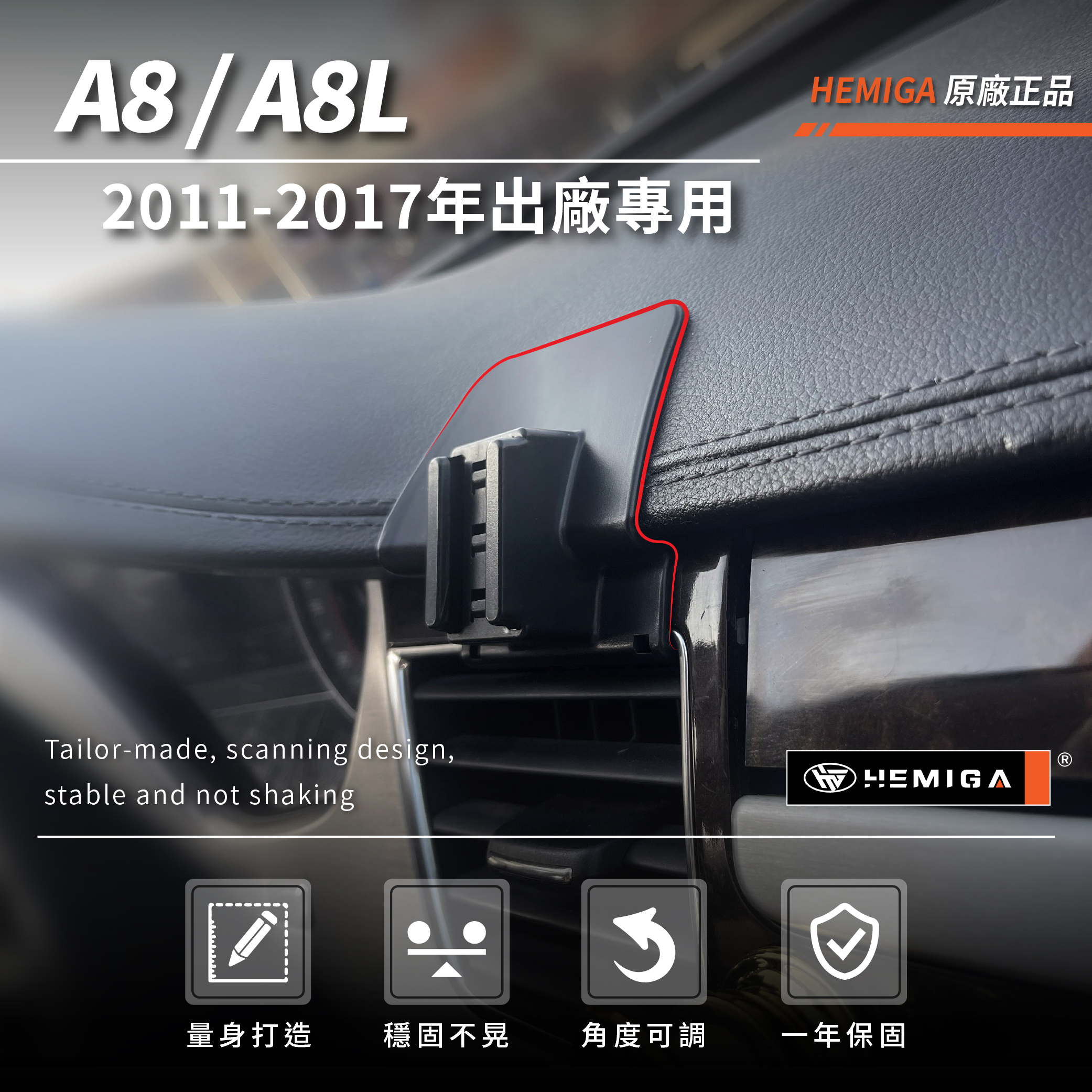 HEMIGA A8手機架 2011-2017 A8L手機架 Audi 奧迪 專用型 手機架