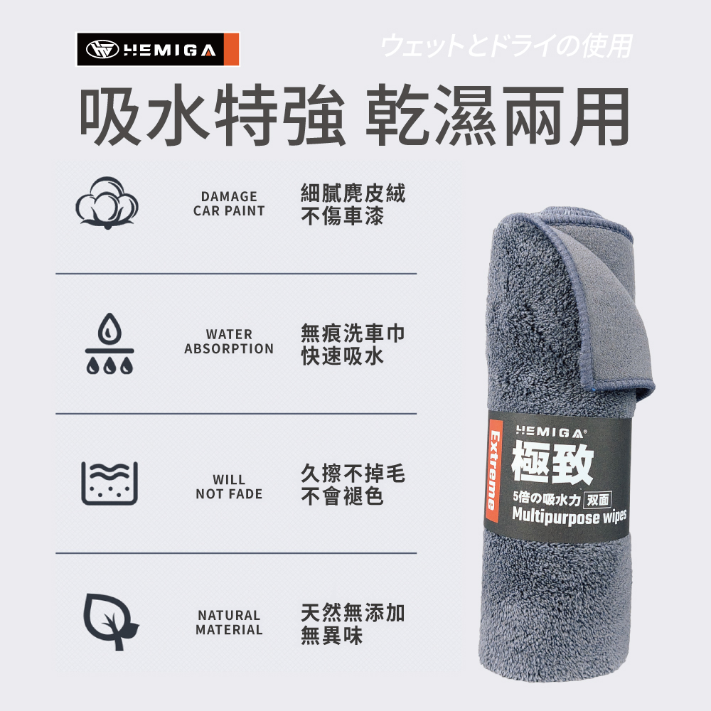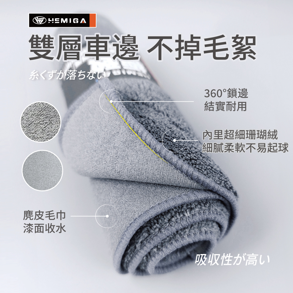 【HEMIGA】麂皮珊瑚绒雙面巾 超細纖維布 洗車布 擦車布 下蠟布 抹布 打蠟布 洗車毛巾