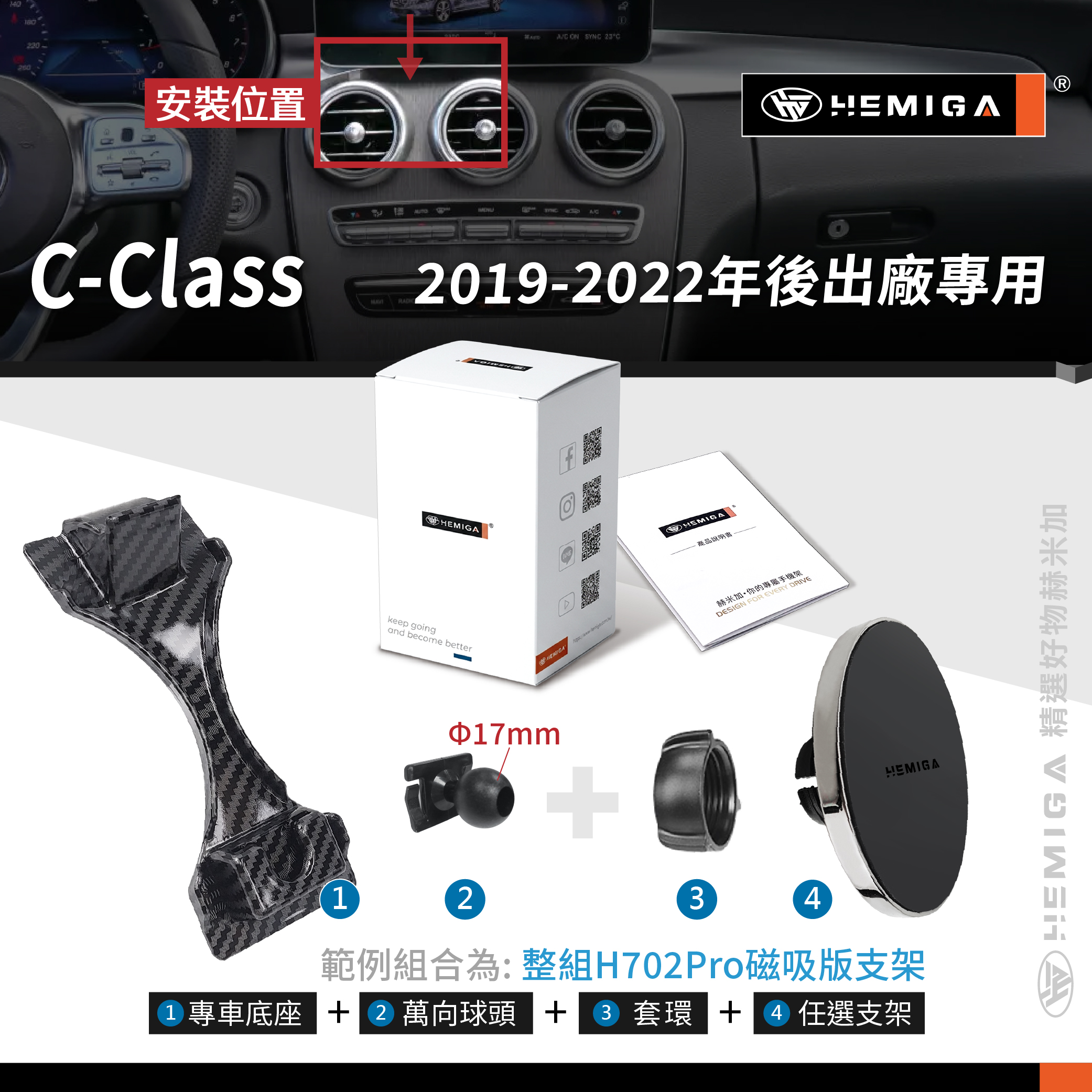 HEMIGA Benz 2019-22 C300 小改款 手機架 w205 glc300 c253 x253 C200