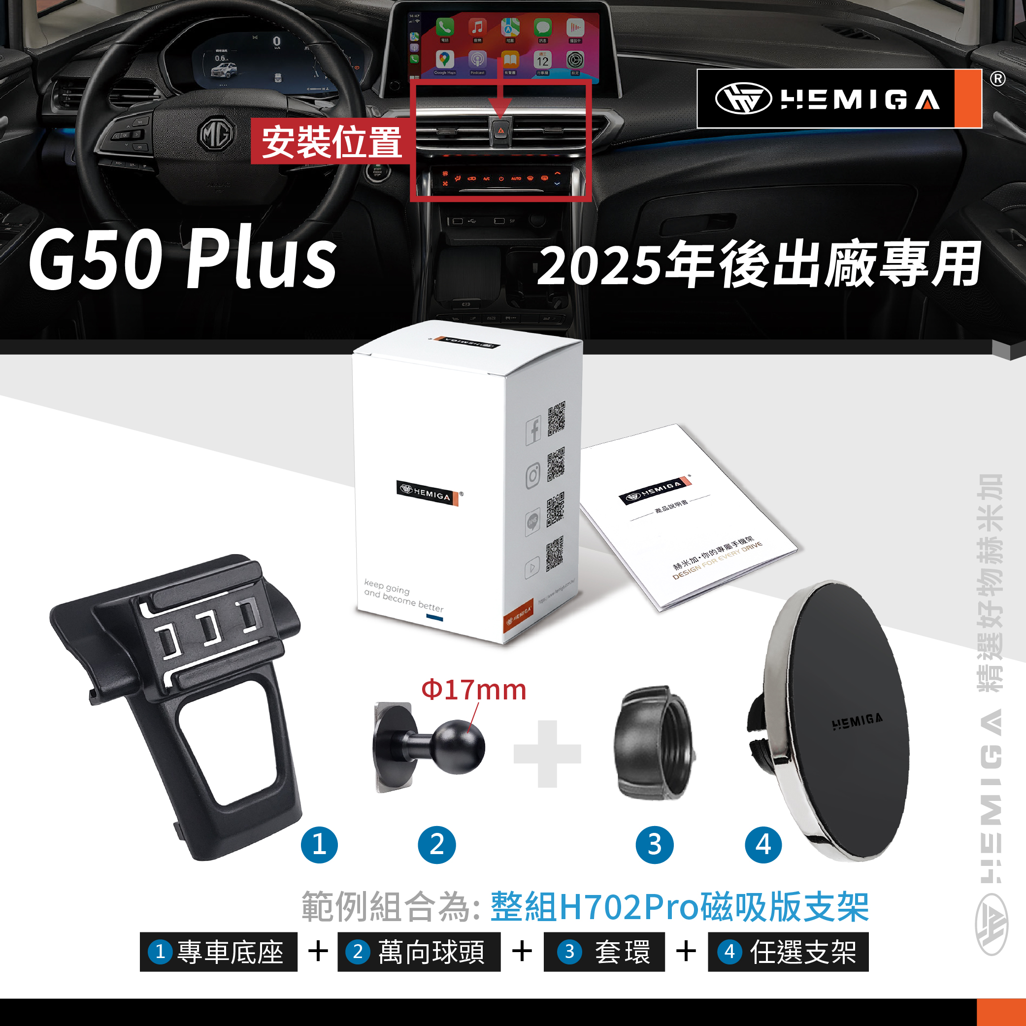HEMIGA g50 手機架 g50plus 手機支架 25-2026年 純扣卡 g50 plus 手機架 金屬球頭